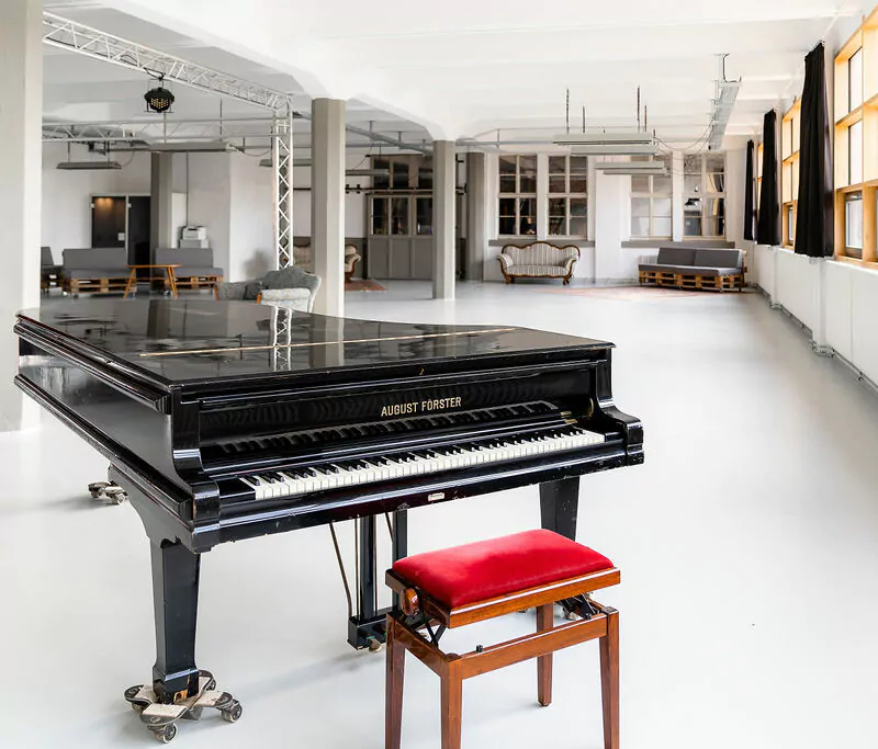 Das Maßstabwerk blickt auf eine bewegte Geschichte zurück. Ursprünglich 1927 als Fabrik für Zollstöcke im Bauhaus-Stil errichtet und 1933 erweitert, besticht das Gebäude bis heute durch klare Linien und zeitlose Industrie-Ästhetik. Der renommierte Architekt Karl Behlert schuf hier einen funktionalen Industriebau, der inzwischen unter Denkmalschutz steht und behutsam zum Kultur- und Veranstaltungsort umgebaut wurde. Sichtbares Industriedesign mit hohen Betondecken, großen Fenstern und historischen Elementen trifft auf stilvolle moderne Akzente – eine gelungene Symbiose aus Historie und Moderne, die dem Maßstabwerk seinen besonderen Charme verleiht. In diesen Hallen wurde einst im wahrsten Sinne des Wortes Maß genommen; heute bietet das denkmalgeschützte Areal auf rund 13.000 m² kreativen Raum für neue Ideen und Erlebnisse. Die Atmosphäre ist einzigartig: Wo früher Maschinen standen, finden sich nun Lounge-Ecken, ein Flügel und Designmöbel im Vintage-Look. Diese Mischung aus industriellem Erbe und modernem Design schafft eine inspirierende Umgebung, die Gäste vom ersten Moment an in ihren Bann zieht.